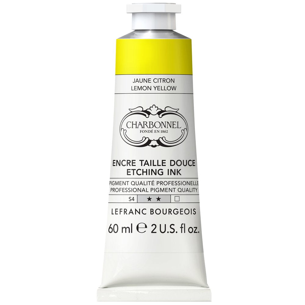 L'encre pour la gravure taille douce est non toxique et 100% naturelle. Toutes les couleurs ont une haute teneur en pigments et ont un excellent pouvoir couvrant, même après dilution avec le médium transparent. - la viscosité varie selon les couleurs - liant à base d’huile de lin - ne contiennent pas d'additifs - fabriqué en France - nettoyage à l'huile ou au solvant L’encre Taille Douce sèche comme une peinture à l’huile, en absorbant l’oxygène, mais plus rapidement. Le temps de séchage est d’environ 2 à 3 semaines selon les couleurs. La gamme répond aux standards des imprimeurs et des artistes les plus exigeants: sélection des pigments suivants leurs critères de solidité lumière et de taux d'acidité, qualité des huiles, finesse du broyage garantissant la qualité des tirages et de la pérennité de l'oeuvre.