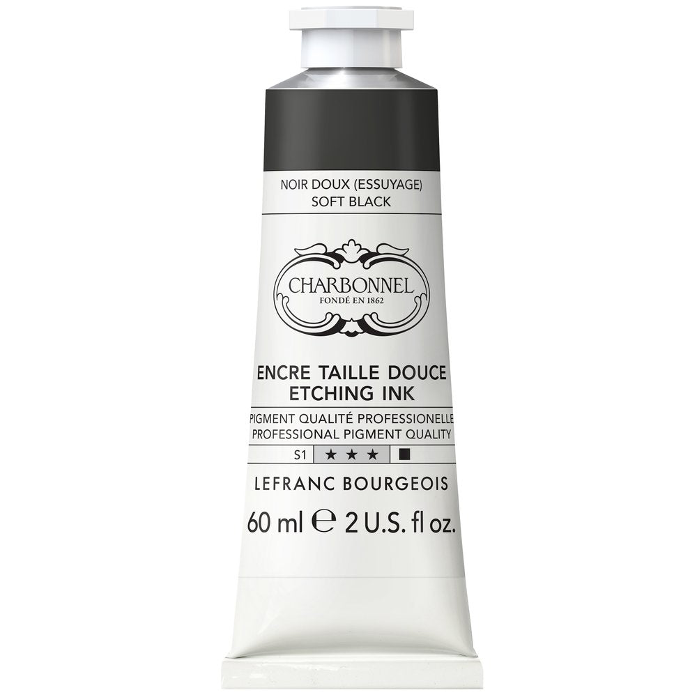 L'encre pour la gravure taille douce est non toxique et 100% naturelle. Toutes les couleurs ont une haute teneur en pigments et ont un excellent pouvoir couvrant, même après dilution avec le médium transparent. - la viscosité varie selon les couleurs - liant à base d’huile de lin - ne contiennent pas d'additifs - fabriqué en France - nettoyage à l'huile ou au solvant L’encre Taille Douce sèche comme une peinture à l’huile, en absorbant l’oxygène, mais plus rapidement. Le temps de séchage est d’environ 2 à 3 semaines selon les couleurs. La gamme répond aux standards des imprimeurs et des artistes les plus exigeants: sélection des pigments suivants leurs critères de solidité lumière et de taux d'acidité, qualité des huiles, finesse du broyage garantissant la qualité des tirages et de la pérennité de l'oeuvre.